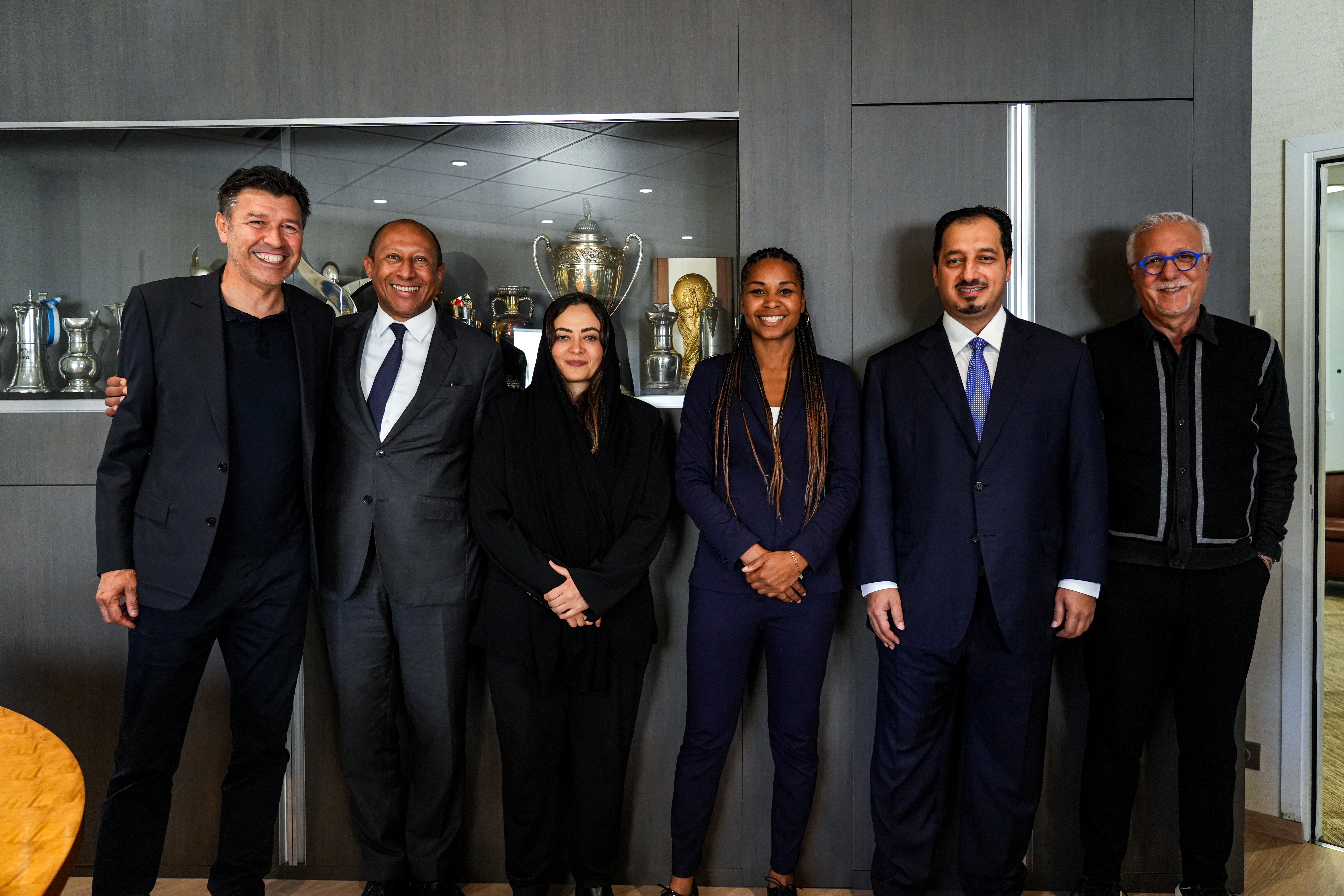 From left to right: Hubert Fournier, National Technical Director at the FFF, Philippe Diallo, President of the FFF, Lamai Bahaian, Vice-President of the SAFF, Laura Georges, Secretary General of the FFF, Yasser Al Misehal, President of the SAFF, and Nasser Larguet, National Technical Director of the SAFF (photo Germain REZÉ / FFF).