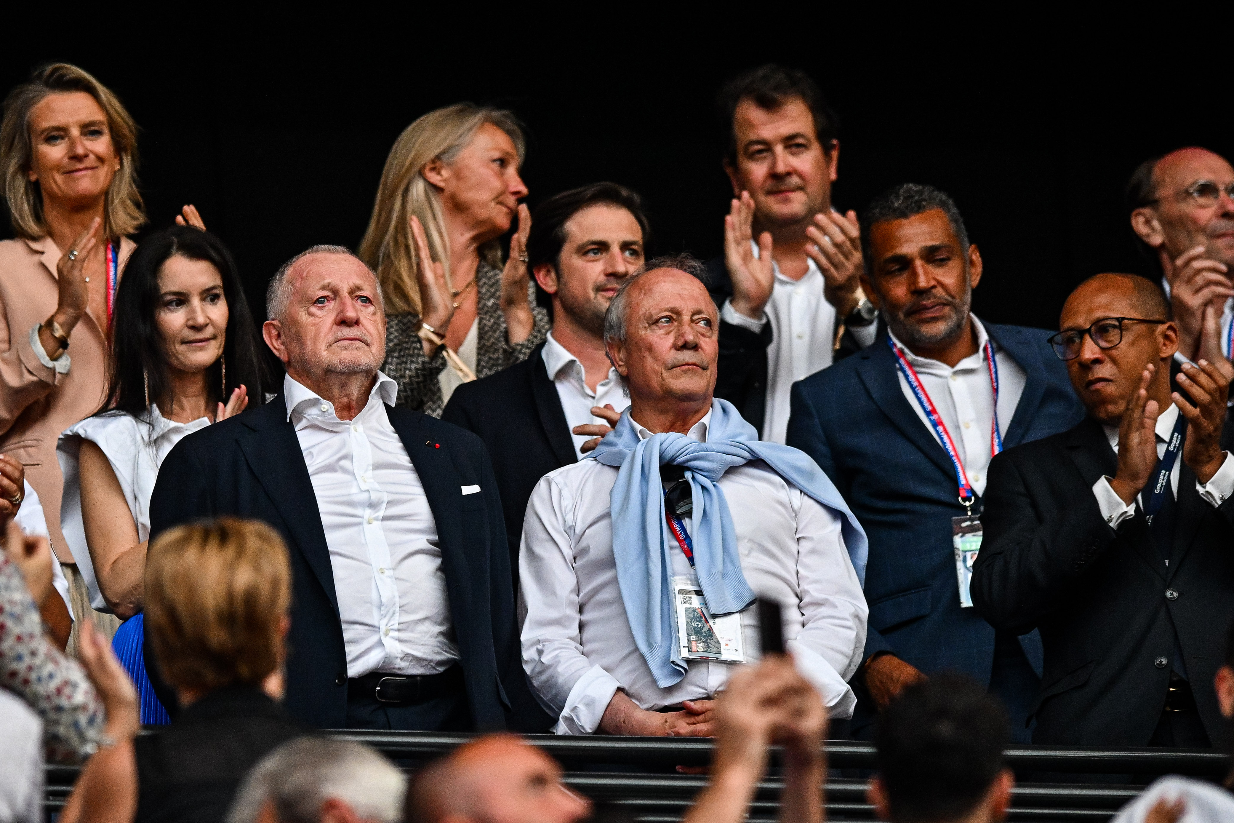 Bernard Lacombe with Philippe Diallo and Jean-Michel Aulas, in May 2023 at Groupama Stadium (photo Baptiste FERNANDEZ / ICON SPORT).