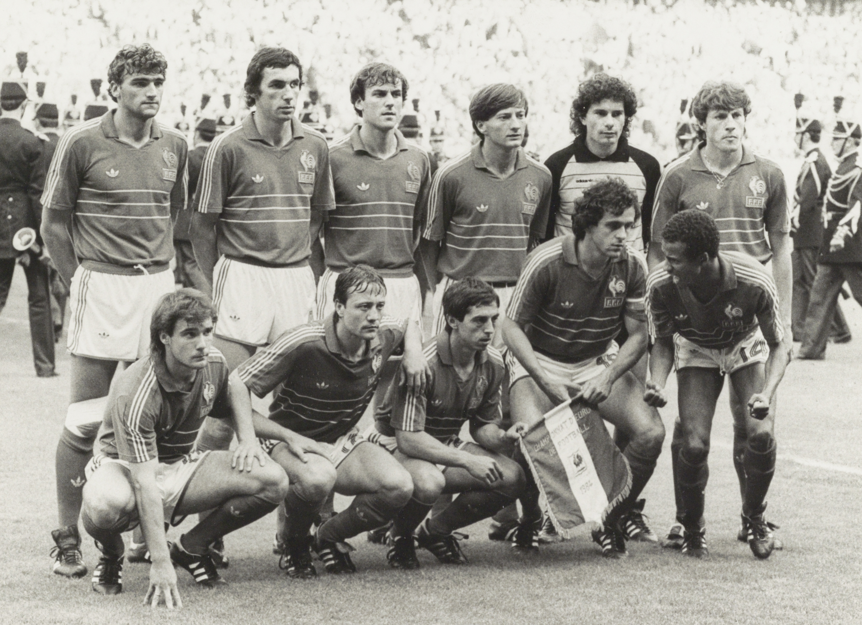 Bernard Lacombe (crouching, second from the left) was part of the French team for the Euro 1984 final (photos from the FFF Archives).